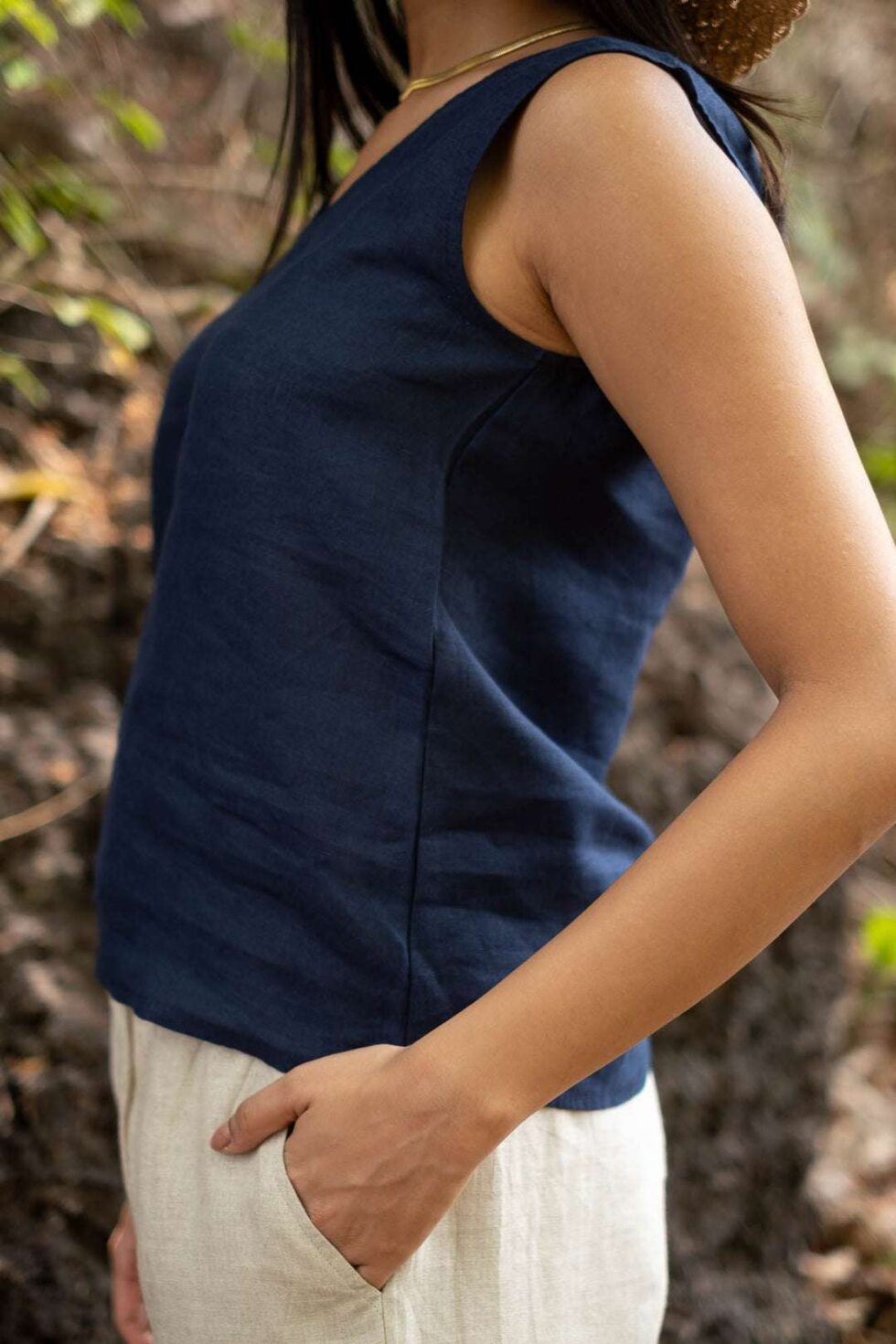Women’s Cotton Solid V Neck Sleeveless 2 Piece Outfit Loose Tank Top and Wide Leg Palazzo Pants Sets cord set ( Navy Blue-White )