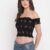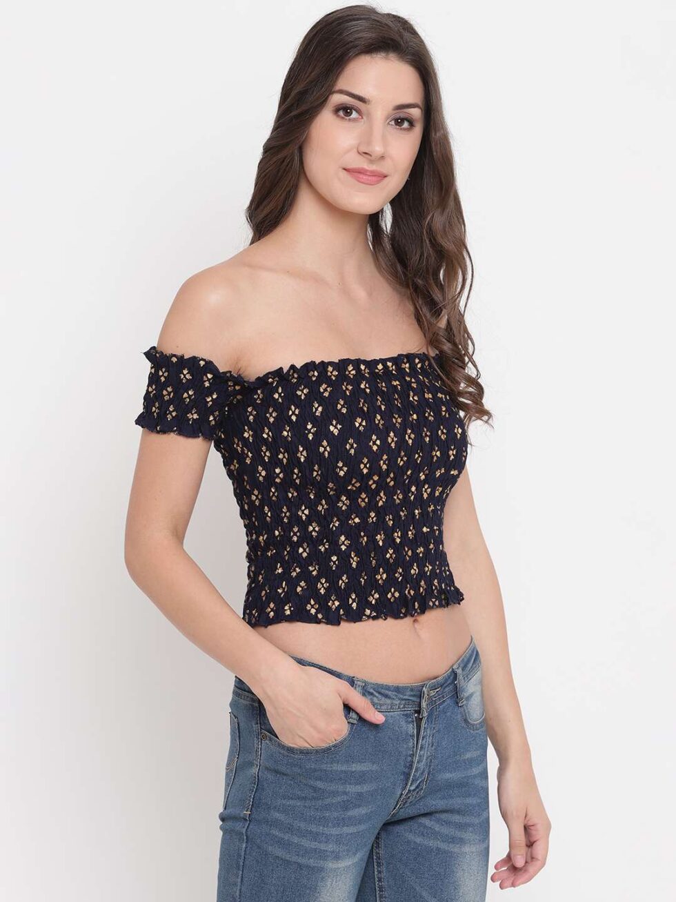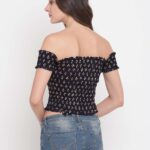 Women’s Rayon Printed Off-Shoulder Smocked Crop Top Short Sleeve Casual Styles Tank Top (FREE SIZE) Multi12