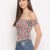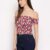 Women’s Rayon Printed Off-Shoulder Smocked Crop Top Short Sleeve Casual Styles Tank Top (FREE SIZE) Multi34