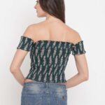 Women’s Rayon Printed Off-Shoulder Smocked Crop Top Short Sleeve Casual Styles Tank Top (FREE SIZE) Multi37